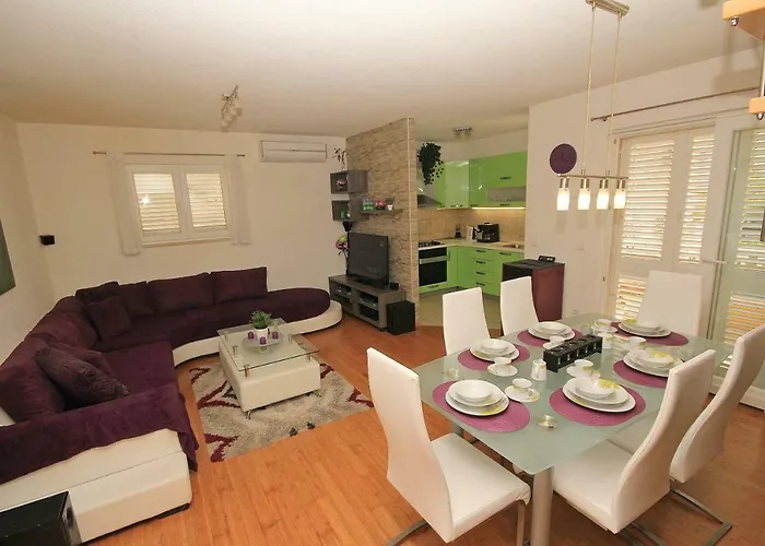 Apartment Ivana appartement van 90 m^2 biedt uitzicht op het strand en bevindt zich binnen 10 minuten met de auto vanaf het Natuurpark Biokovo in Makarska. Het appartement heeft een terras met de zee.